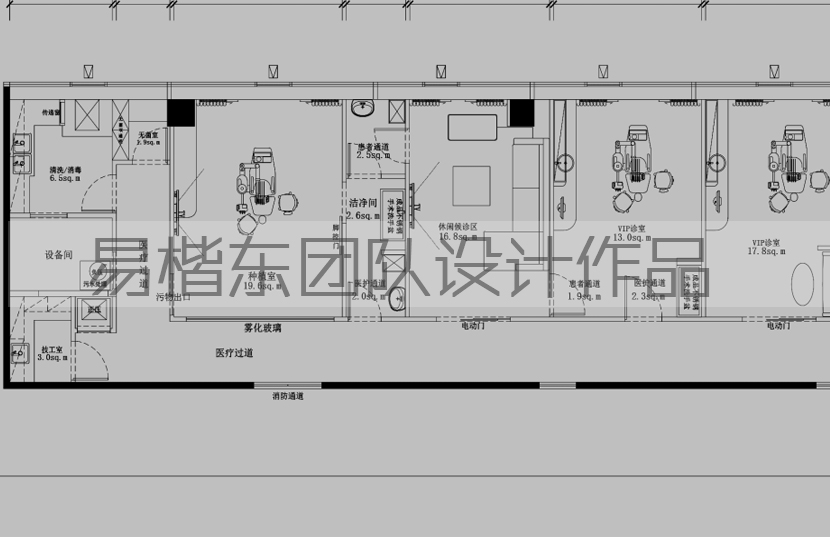 過道區(qū)域,縱深的延伸距離,拉長了空間的長度,簡約而不單調(diào),簡單的底色布設(shè)顯得干凈而大方。幾幅壁畫的點(diǎn)綴,讓整體區(qū)域有了色彩的跳動(dòng)與活力。玻璃墻將每一個(gè)就診區(qū)域獨(dú)立的間隔開,既考慮了私密性,又保全了空間的專屬性。